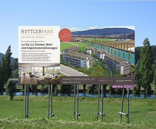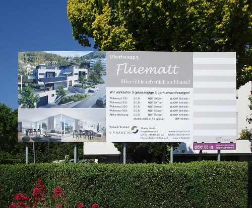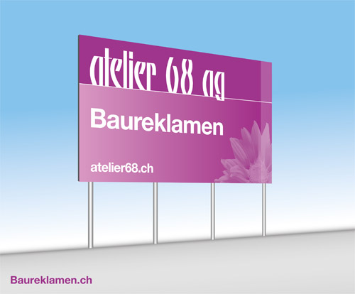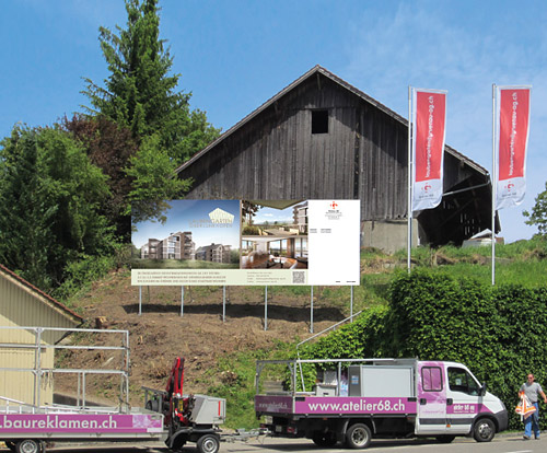 Mit Baureklamen vom Spezialisten Atelier 68 AG präsentieren Sie Ihr Bauobjekt schweizweit professionell und kostengünstig: