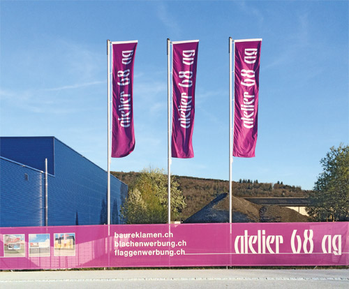 Bauflaggen vom Baureklamen-Profi Atelier 68 AG ziehen die Blicke an und setzen Ihr Bauobjekt perfekt in Szene: