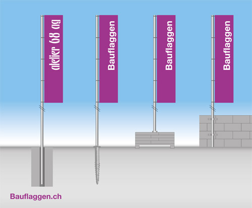 - vielseitige Montagelösungen der Bauflaggen je nach Standort (Fundament, Erdanker, Sockel mobil und mehr)
