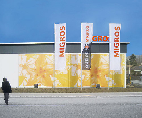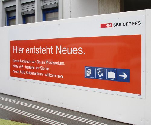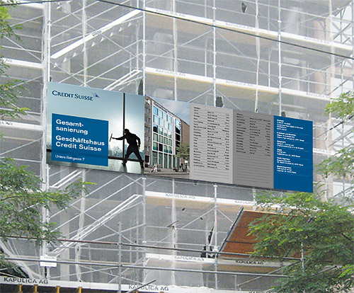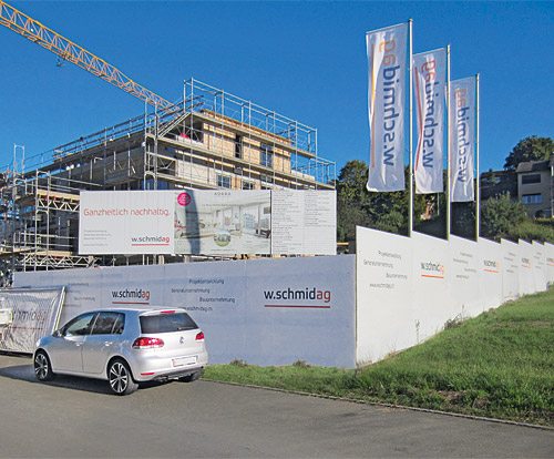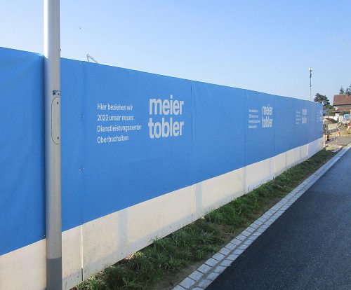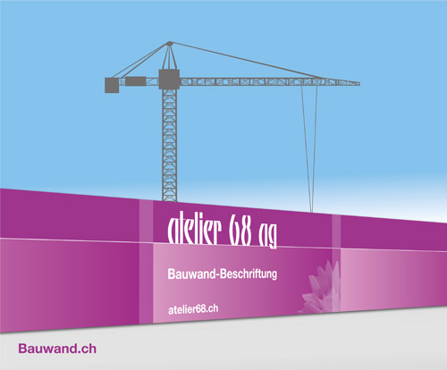 Als Totalunternehmer der Bauwerbung erhalten Sie bei Atelier 68 AG die Baureklamen und Bauwand-Beschriftung aus einer Hand: